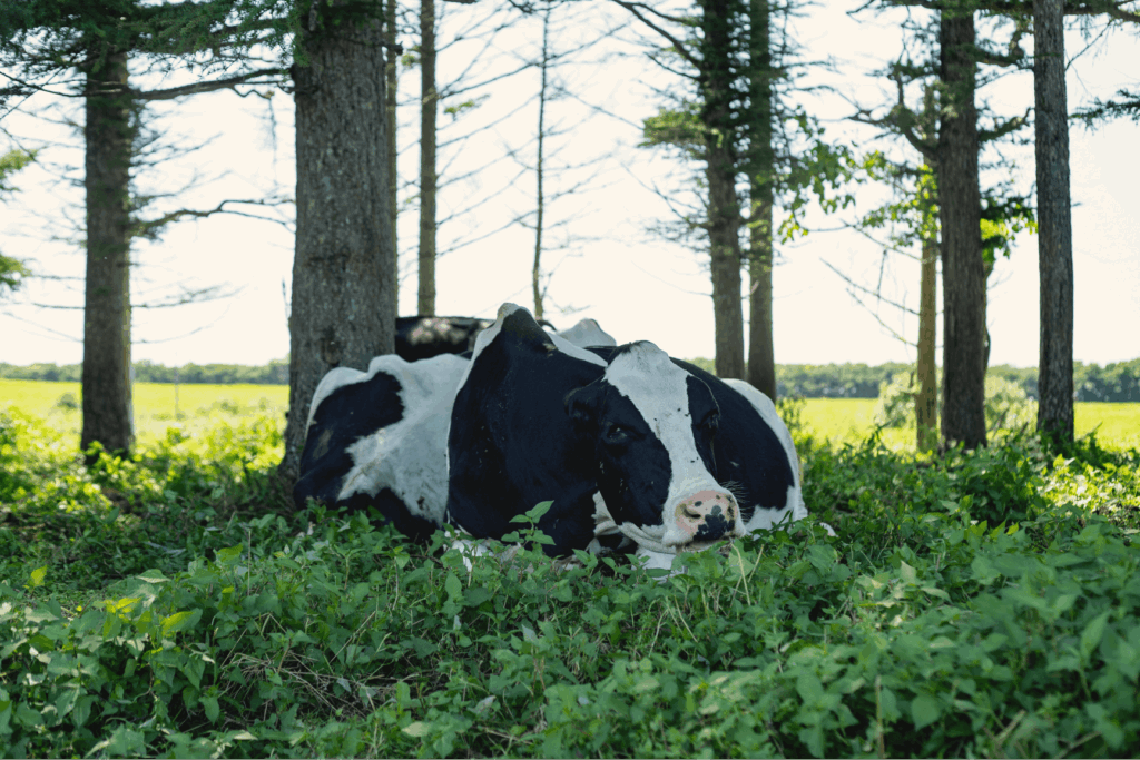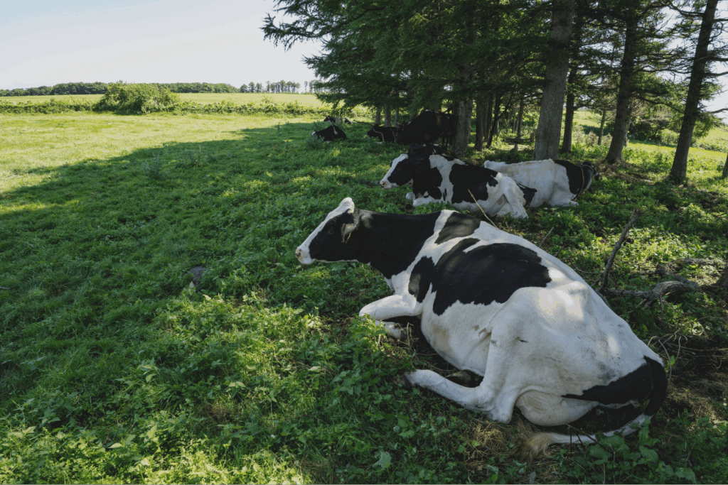 連日の猛暑。暑いのは人だけではありません。牛たちも暑さは大の苦手。自ら風通りのよい日陰を探して涼んでいる姿が、なんとも可愛らしいです。