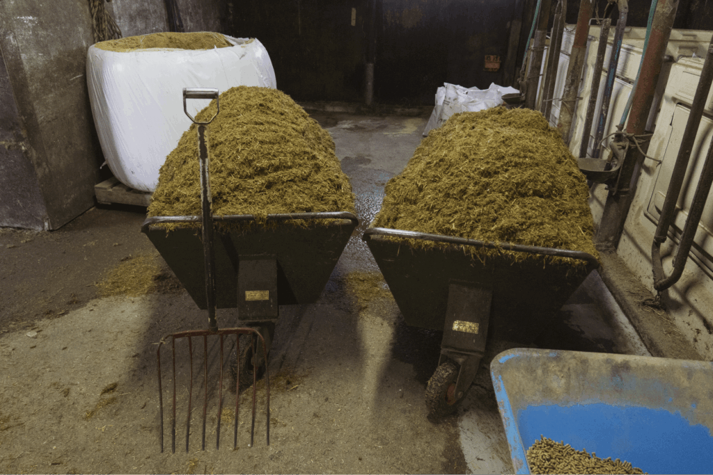 牛たちの餌といえば牧草。美味しい牛乳を出してもらうには、まず美味しい餌から。