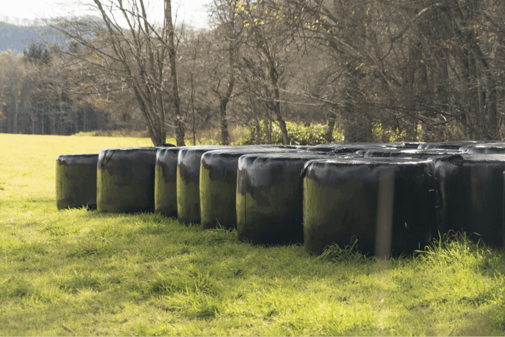 刈り採った牧草は、発酵させて長期保存。これが「サイレージ」といって、牧草の漬物のようなもの。