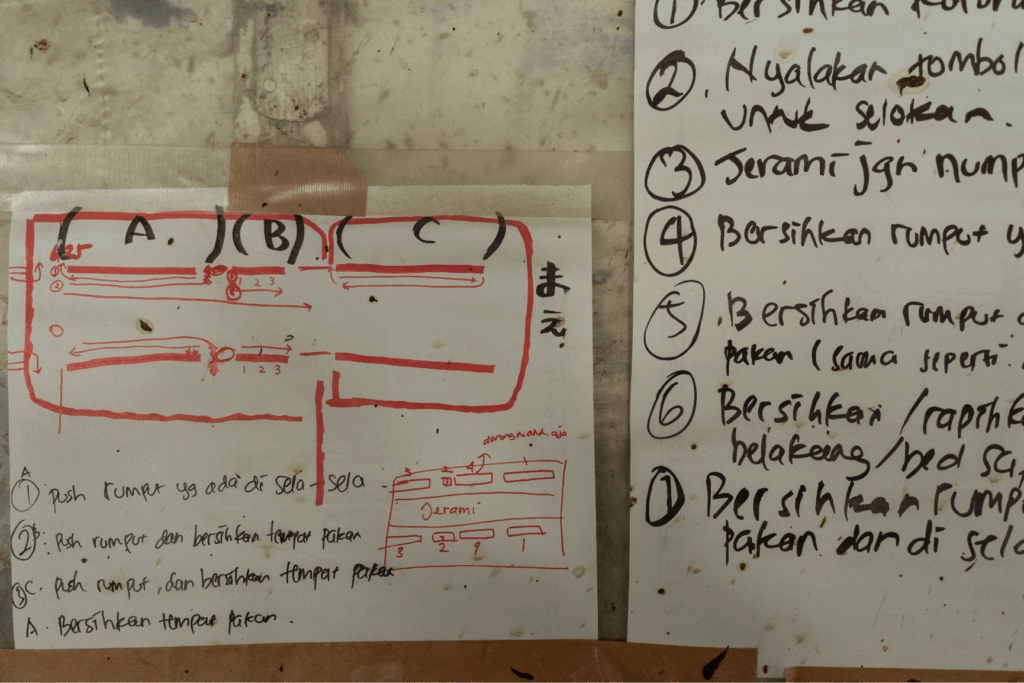 写真の2枚目にあるのは、以前の研修生が、次の研修生のために残したメモ書き。言葉のわからない離れた国で、なんと逞しいことだろう。