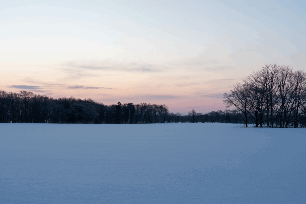 静かに迎える朝、牛たちの声がよく響きます。道東地方の冬は西高東低の気圧配置から、よく晴れるのが特徴。晴れた日が続くほどに放射冷却でよく冷え込みます。寒いからこそ美しい世界がここにあります。