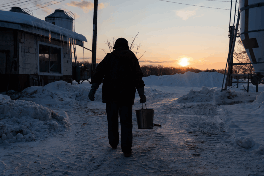 寒い冬、地平線から上がってきた太陽が仕事中の身体を温めます。「綺麗だね」このあと振り返って一言。毎日、太陽と季節の変化を感じている仕事です。