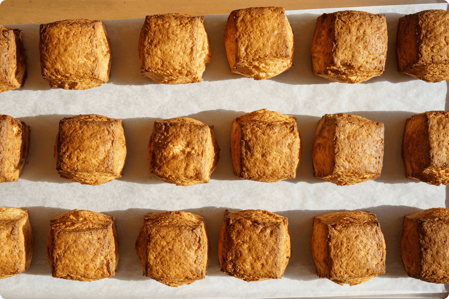 スコーンもまた、2023年にオープンした時からたくさんのお客様に愛されている商品の一つで、毎朝開店の前に仕込み、焼き立てをご用意しています。